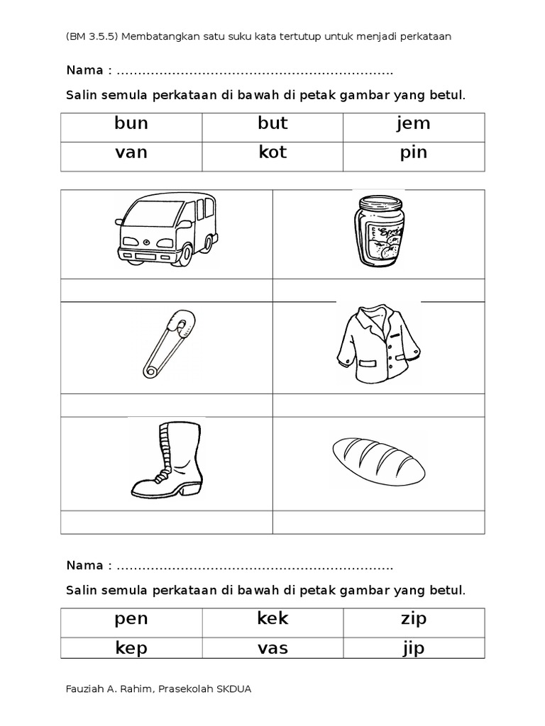 Menulis Perkataan Yang Mengandungi Suku Kata Tertutup Ng Pdf